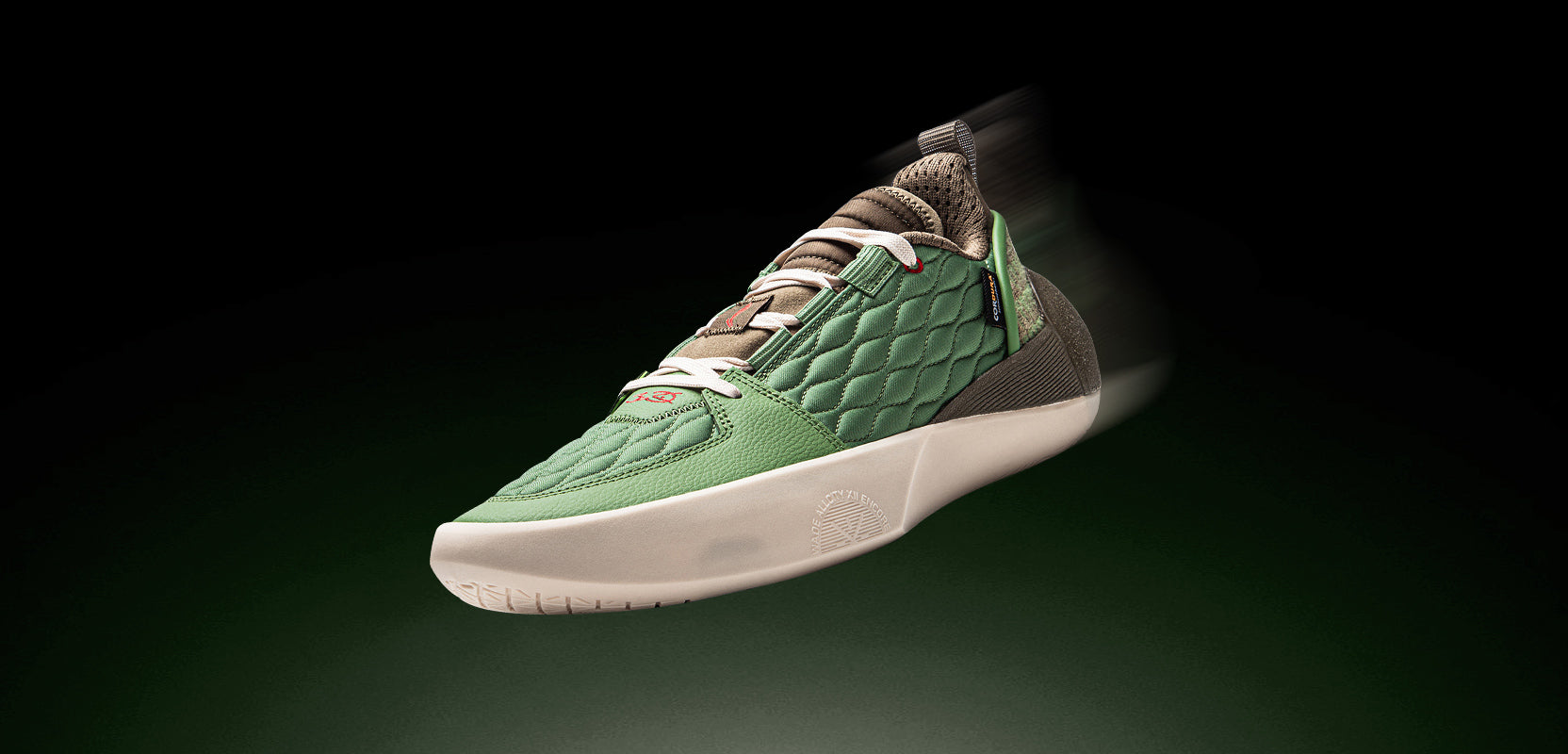 Die GCU „GROUND CONTROL UNIT“-Außensohle hat hervorragende Abriebfestigkeit und verbesserte Rutschfestigkeit im Vergleich zu herkömmlichen durchscheinenden Gummiaußensohlen, insbesondere auf staubigen Oberflächen.