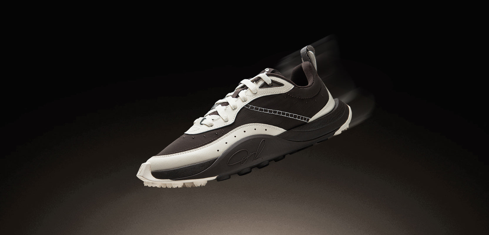 D' Angelo Russells Name und Logo befinden sich an der Schuhzunge, und das „ICE IN MY VEINS“-Abzeichen am Obermaterial. Die Außensohle weist das Muster des Way-of-Wade-Marks auf, und die Einlegesohle das charakteristische Muster von Dloading.