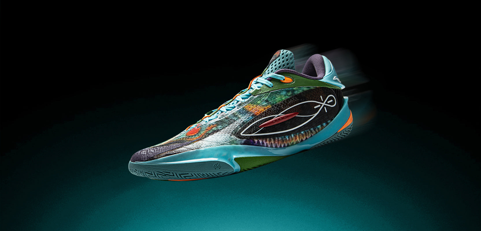 Das Obermaterial besteht aus einem Multi-Material-Patchwork, das ein exzellentes Umwickelgefühl und ein Spielfeldgefühl bietet, um explosive Bewegungen zu unterstützen. Farbgebung inspiriert von den leuchtenden Farben farbwechselnder Eidechsen.