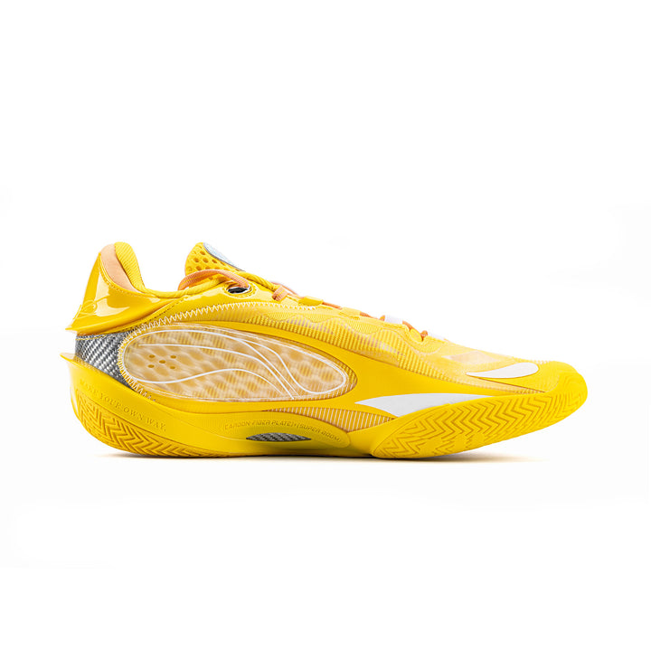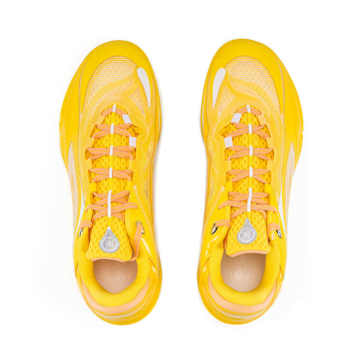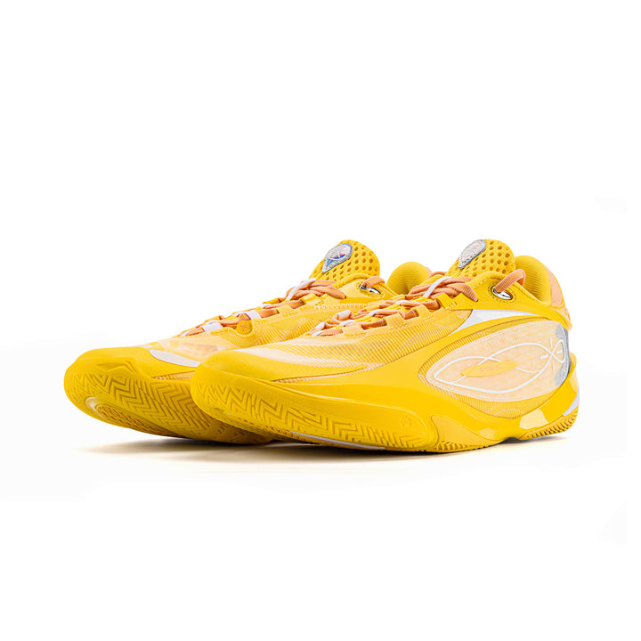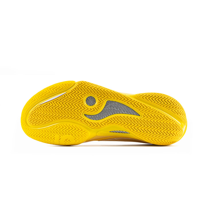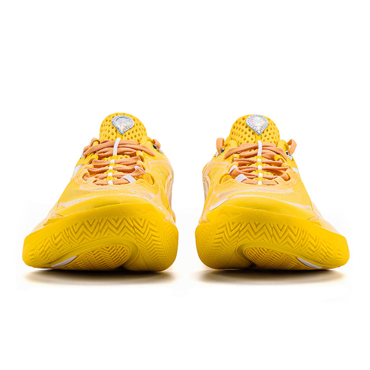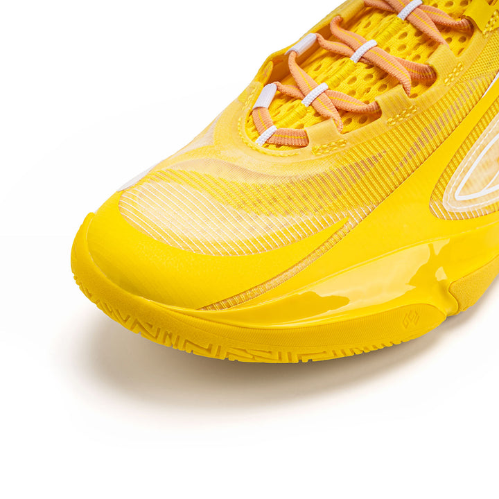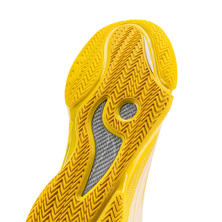 Das Obermaterial besteht aus einem Multi-Material-Patchwork, das ein exzellentes Umwickelgefühl und ein Spielfeldgefühl bietet, um explosive Bewegungen zu unterstützen. Das Farbschema ist einfach, in gelb präsentiert.
