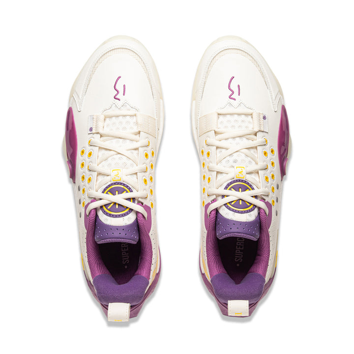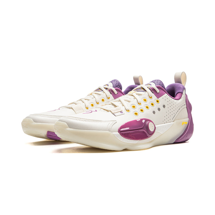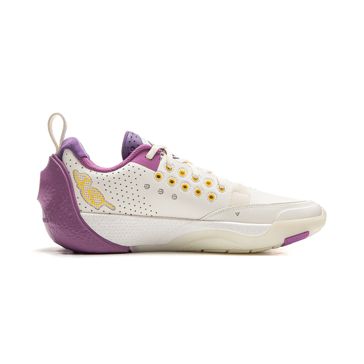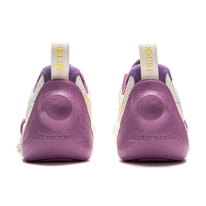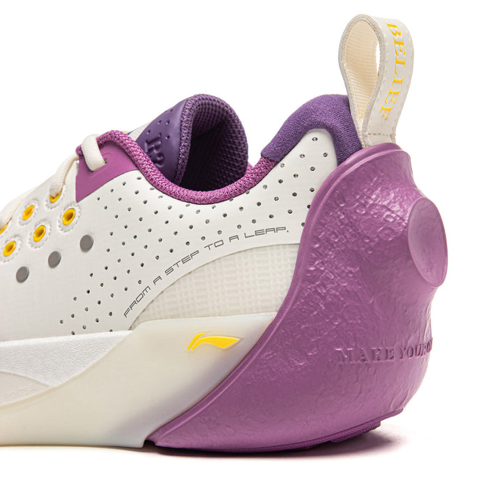 Das Design des Absatzes ist von Mondhöhlen inspiriert. Es ist in Weiß gehalten und mit violetten und gelben Elementen verziert. Dwyane Wades Unterschrift ist an der Ferse angebracht.