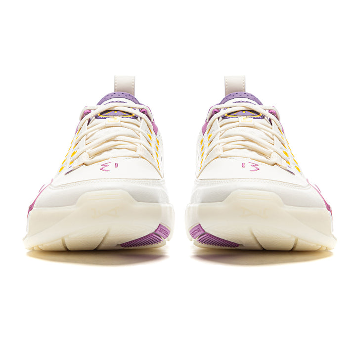 Die Wade All City 13-Serie ist entwickelt, um verschiedenen Spielstilen gerecht zu werden und eignet sich sowohl für Innen- als auch Außenperformanz. Ihr hauptsächliches Upgrade ist die TPU Euro Plate, die ausreichende Unterstützung für Eurosteps und andere verwandte Bewegungen liefert. Mit einer durchgehenden BOOM-Mittelsohle und einer Hybrid-Außensohle zeichnet sie sich durch Rückpralleffekt und Griffigkeit aus.