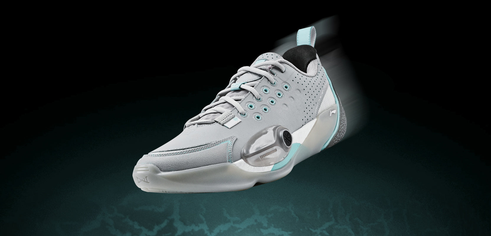 Das Design des Absatzes ist von Mondhöhlen inspiriert. Es ist in Grau gehalten und mit minzgrünen Elementen verziert. Dwyane Wades Unterschrift ist an der Ferse angebracht.