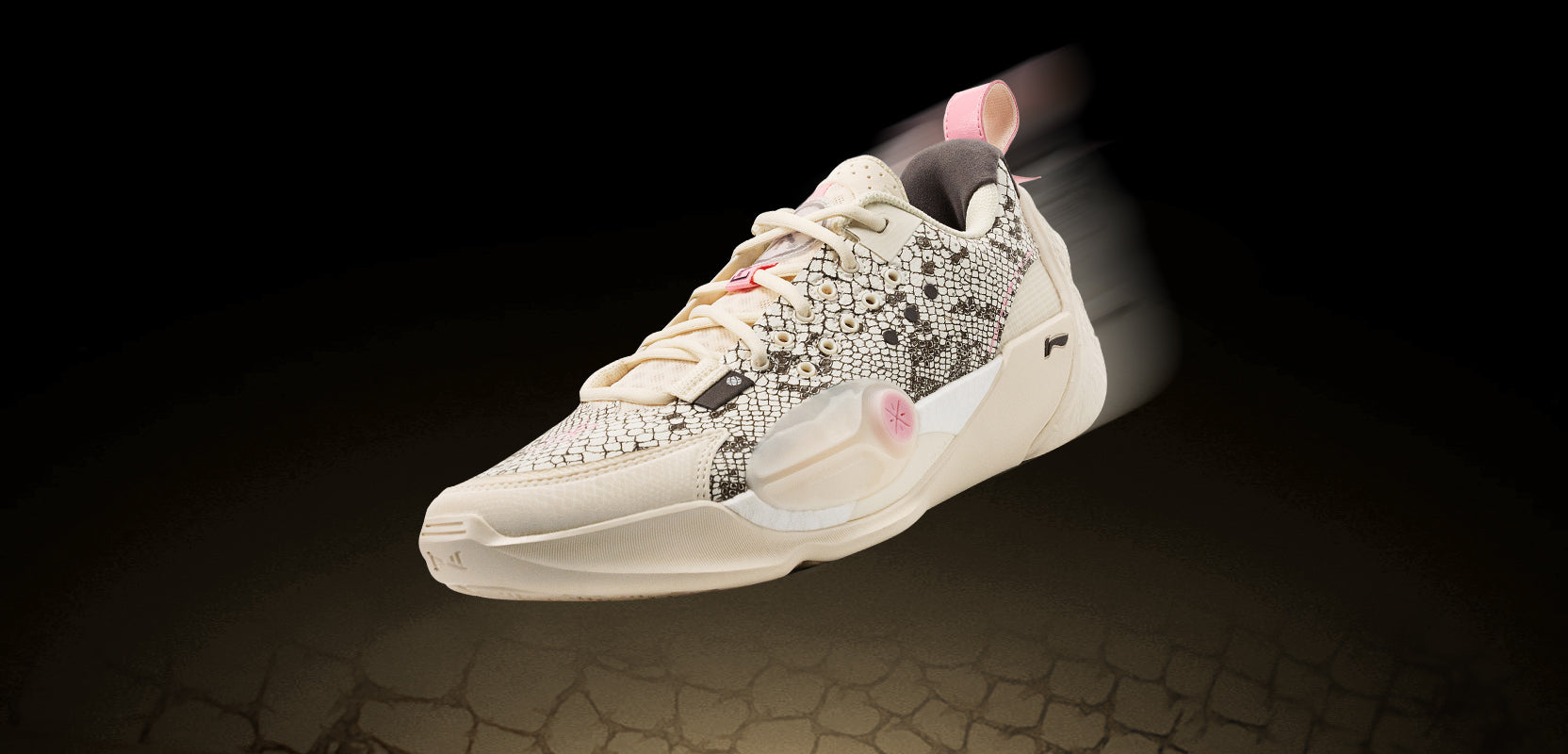 Das Design des Absatzes ist von Mondhöhlen inspiriert. Das Obermaterial ist mit einem Schlangenhautmotiv verziert und die Zuglasche ist mit zwei chinesischen Schriftzeichen verziert, die das Jahr der Schlange darstellen. Dwyane Wades Unterschrift ist an der Ferse angebracht.