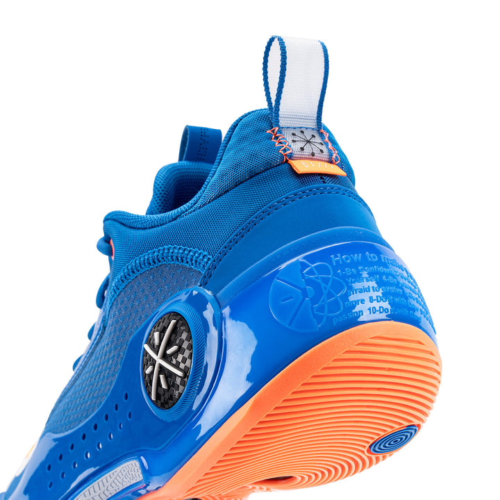 An der Schnürsenkelverschlussstelle befinden sich Zahlen, die Dwyane Wades Meisterschaftsjahre repräsentieren, und auf der Schuhzunge ist das DNA-Muster angebracht.