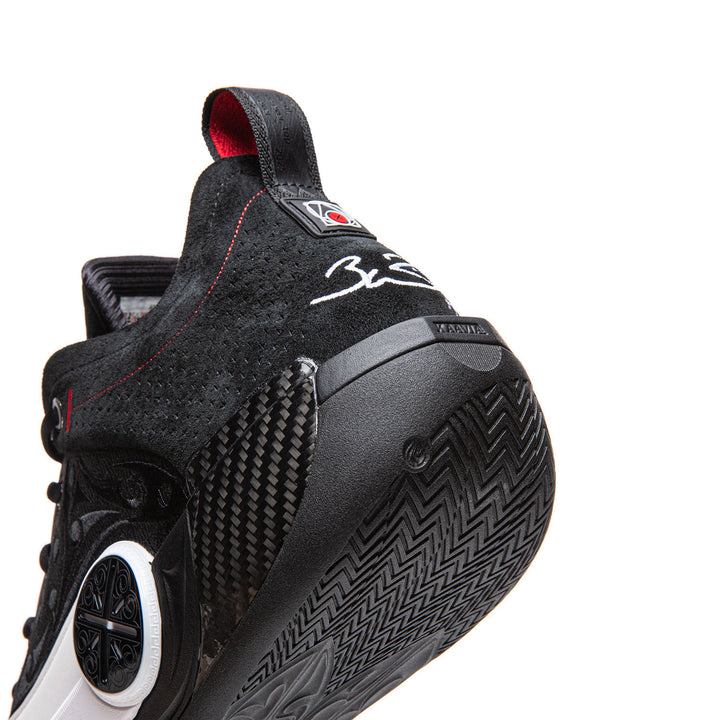Eine Kohlefaserplatte, die mit der SUPER BOOM-Mittelsohle verbunden ist, sowie zwei flexible Kohlefaserpatches um die Ferse herum sorgen für eliteschlechteste Kraftübertragung und Steifigkeit und unterstützen Bewegungen in jede Richtung.
